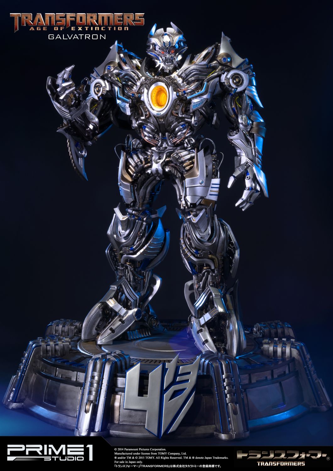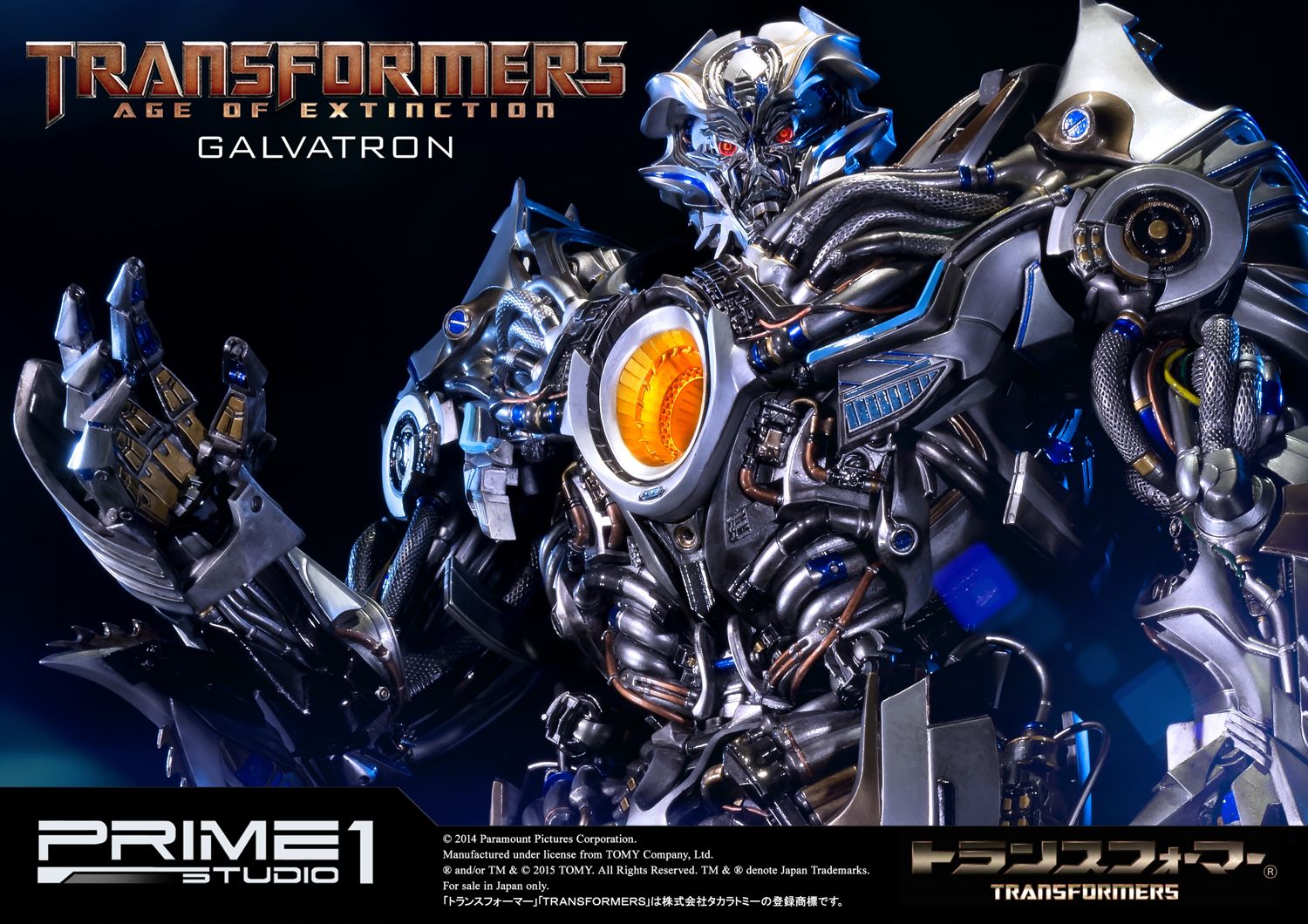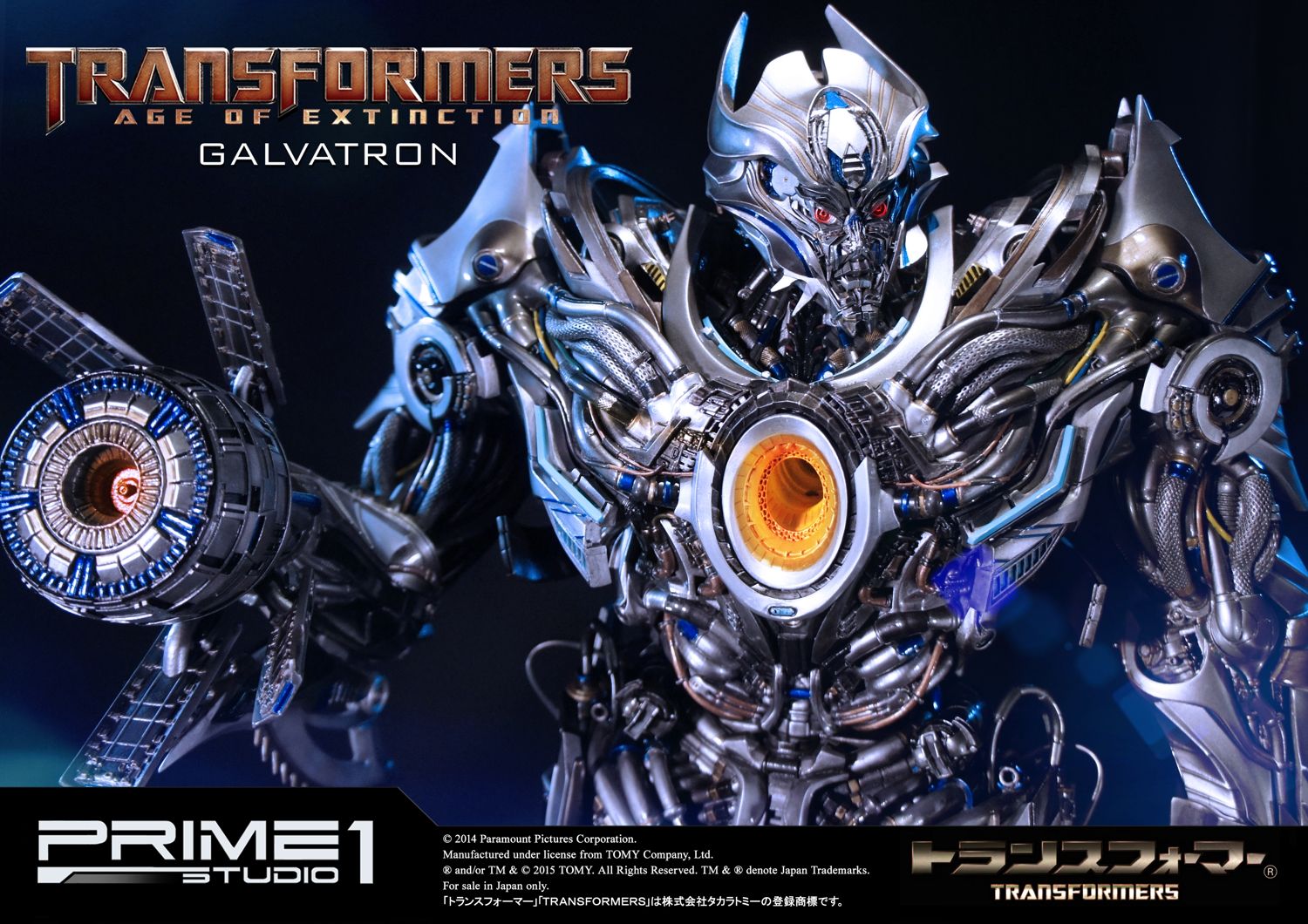 Prime 1 Studio is proud to present MMTFM-09 Galvatron was a U.S. military model,developed by KSI.It was infected by Megatron's mind, so despite all the efforts of people to give it the appearance just like Optimus Prime, the drone continued to recreate Megatron.However humans have built a bot designed to be even more powerful than the fallen DECEPTICON leader. Now,the AUTOBOTS must defeat the mighty GALVATRON!""