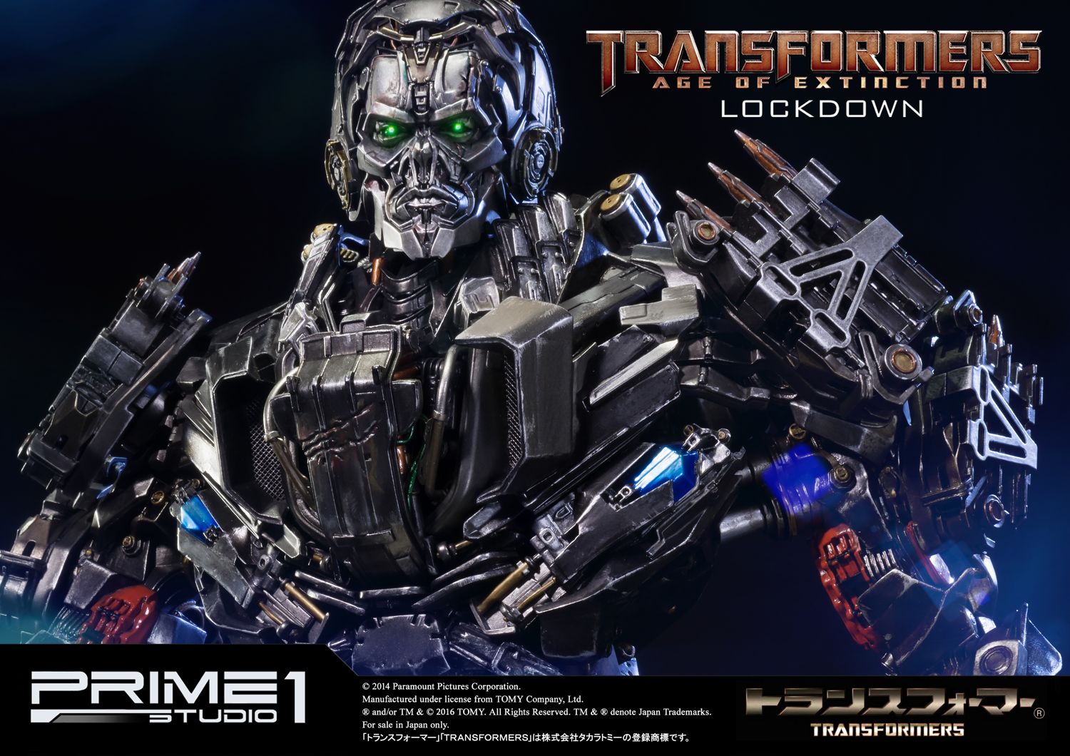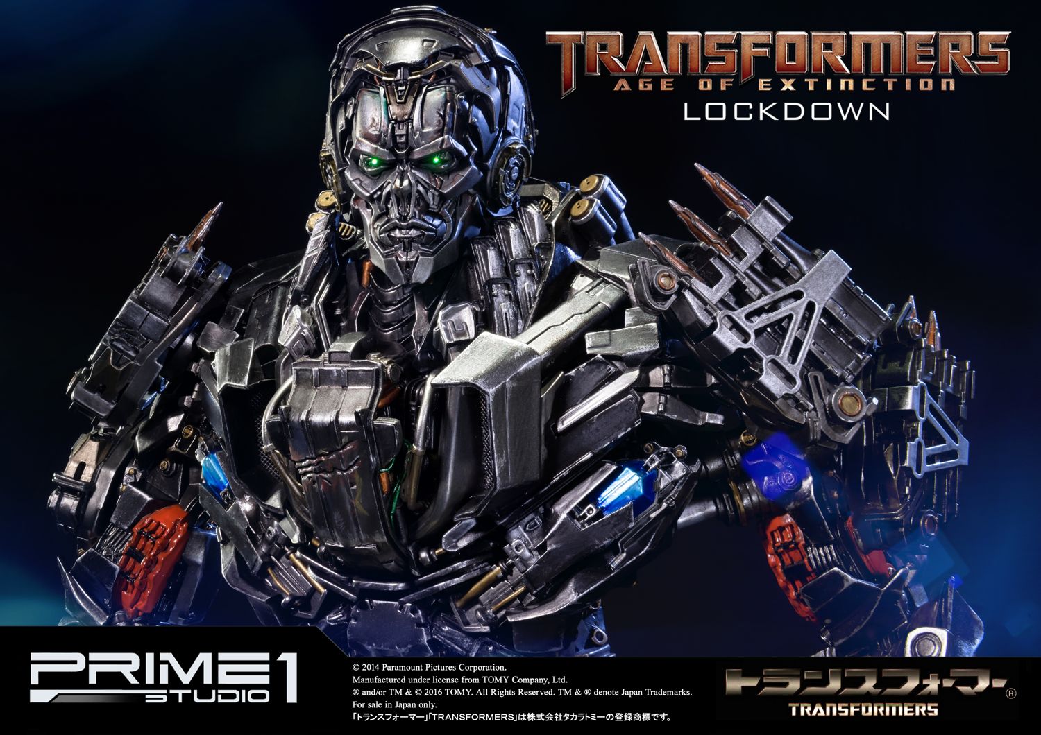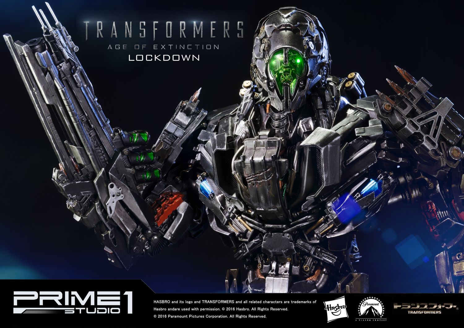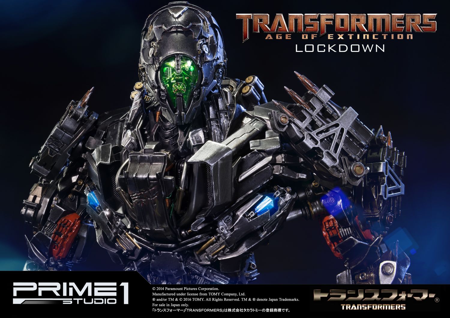 Prime 1 Studio is proud to present Museum Masterline Transformers: Age of Extinction (Film) Lockdown from Transformers: Age of Extinction. Like any bounty hunter, Lockdown will pay top dollar to get what he wants. Answering only to his enigmatic ""Creators"", Lockdown holds himself above the Autobot/Decepticon war and sees both sides as squabbling children that he has to rein in personally. He doesn't think much of other civilized species across the galaxy (particularly humans), though he isn't above working with them if it suits him.