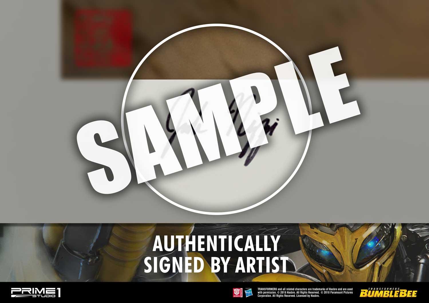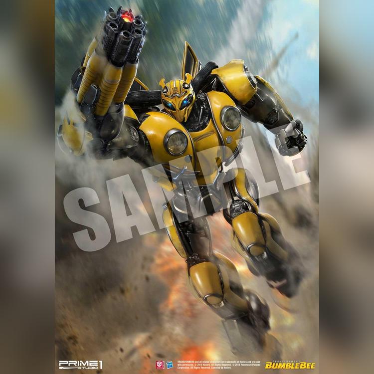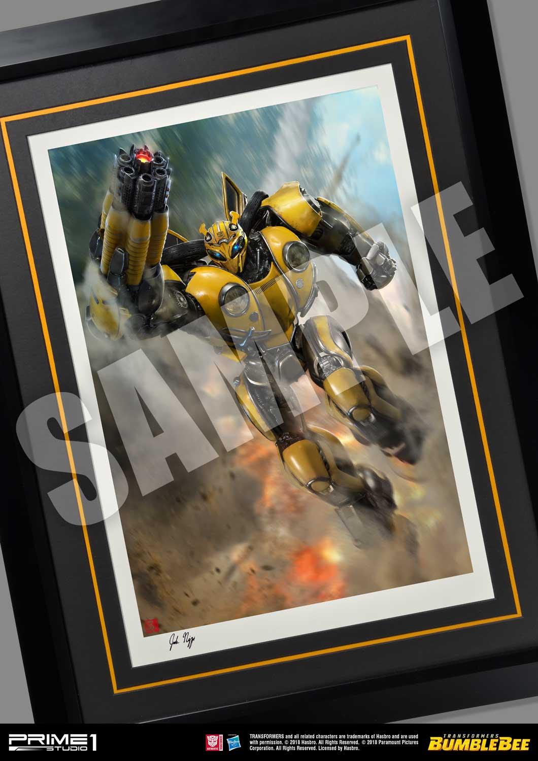 Prime 1 Studio is proud to present APTF-02BM: Bumblebee Battle Mask version Art Print by Josh Nizzi from Transformers: Bumblebee (Film). This Film is the Sixth installment in the Live-Action Transformers Film series. The protagonist of the latest series of the Transformers Film is the Autobot mascot character Bumblebee! The Art Print has been illustrating, by renowned Concept Artist Josh Nizzi, born in Illinois and graduated from the University of Illinois. Known among Transformers Fans for his work done in Transformers Films franchises and others such as G.I. Joe, Marvel and more. Bumblebee's graphic details with iconic yellow color and metallic joint parts such as door wings, and his Battle Mask portrait. Likewise, his pose running-like-a-shot movement gives this picture livelier visual effect. After watching Bumblebee Film released this month, you will not hesitate to order this Art Print to be added in your Transformers collections!