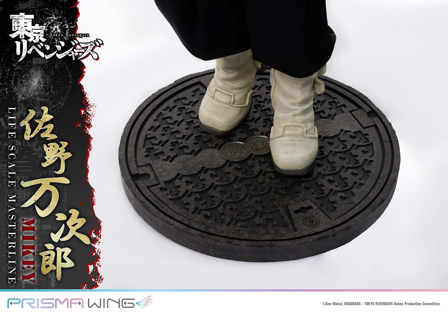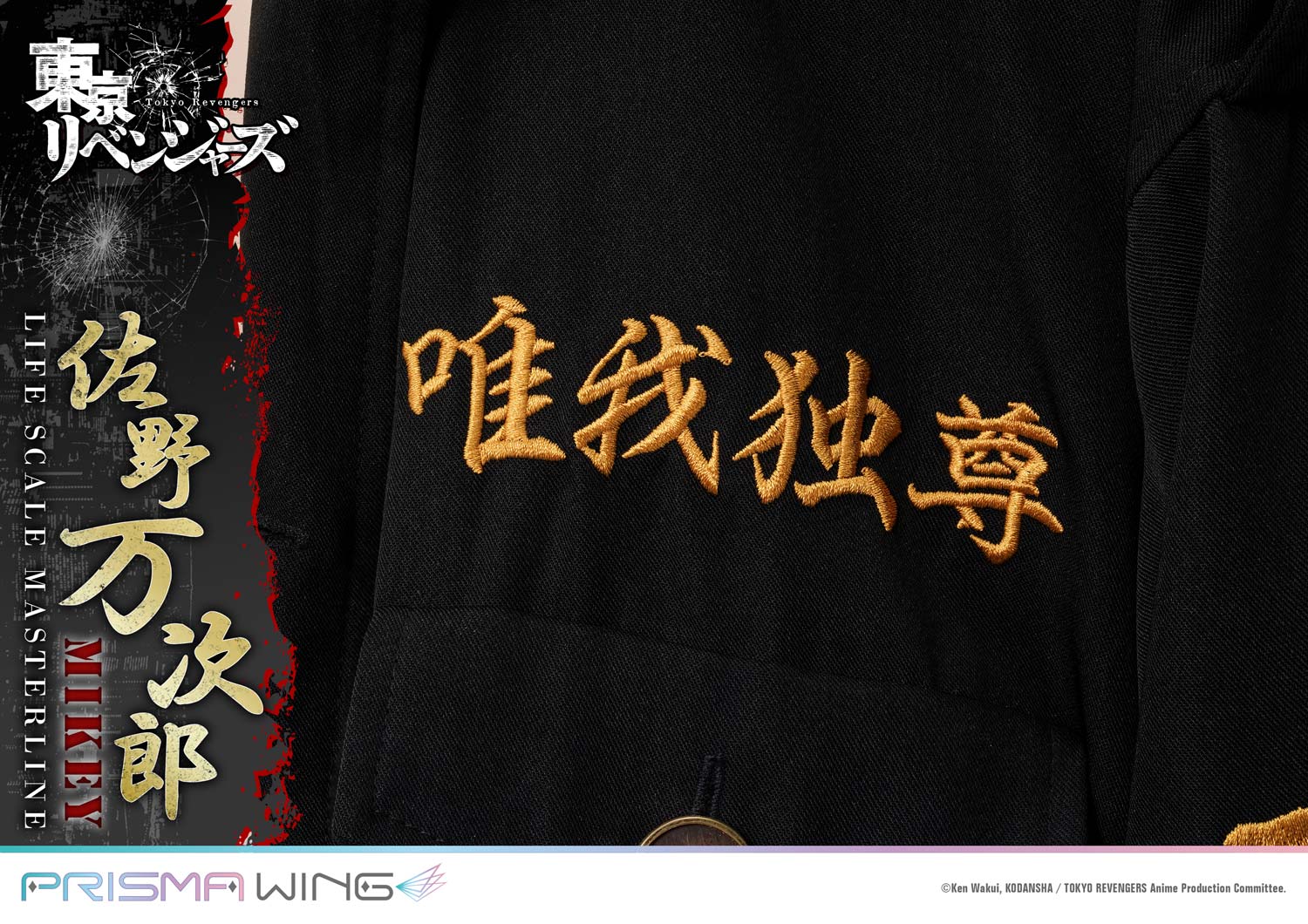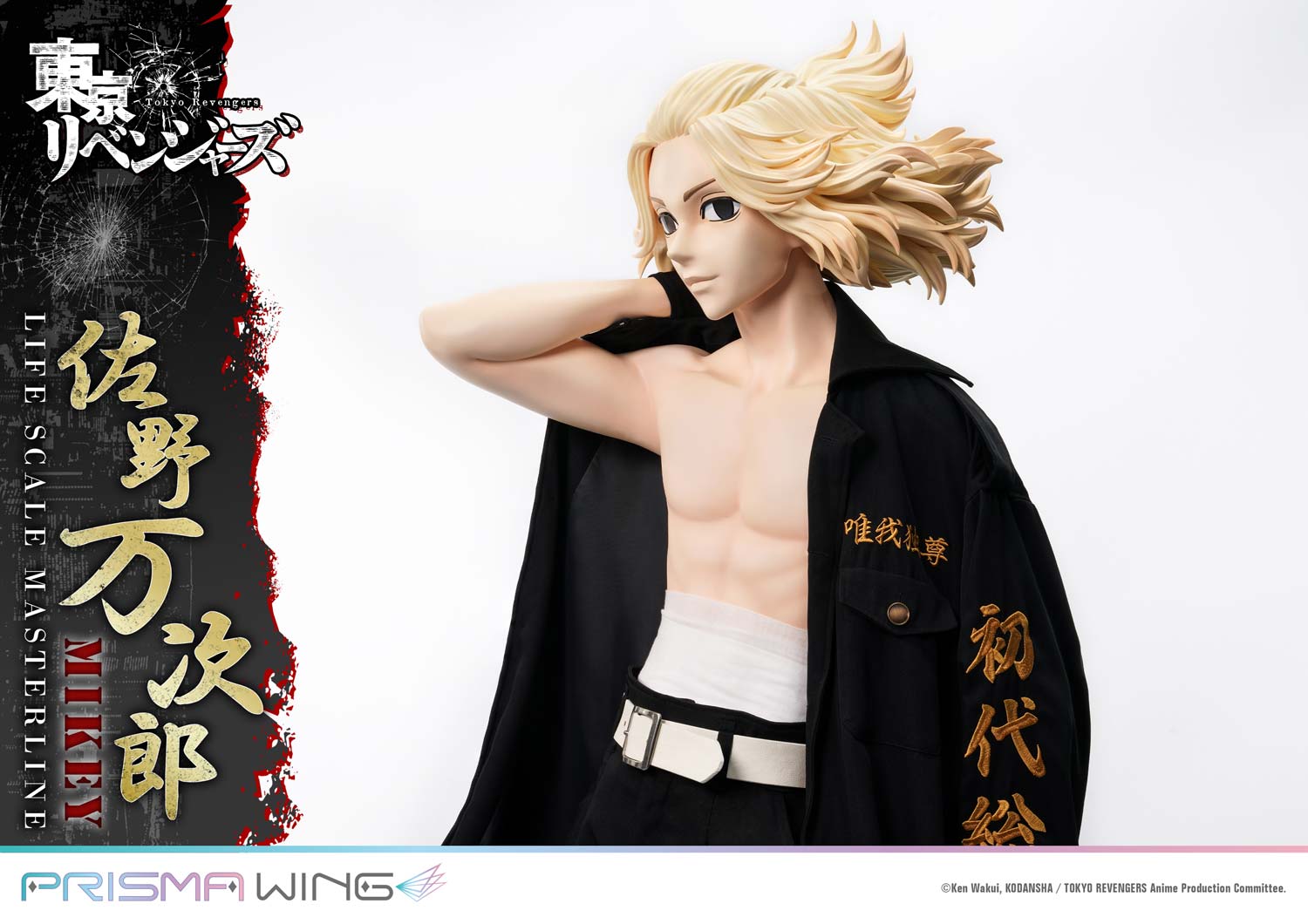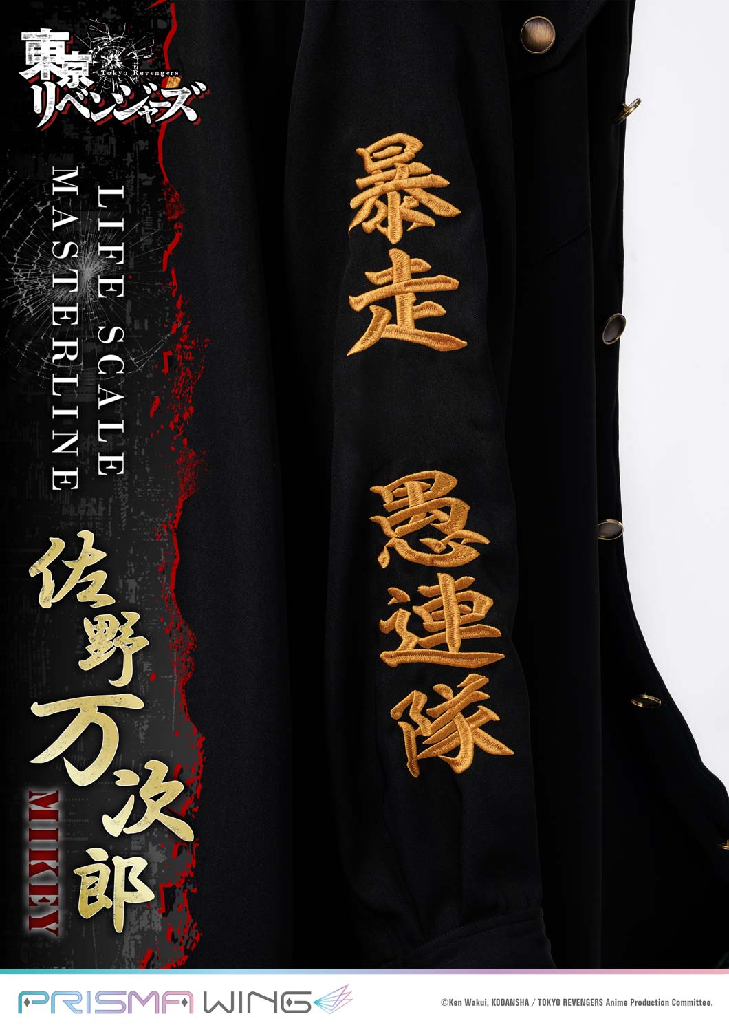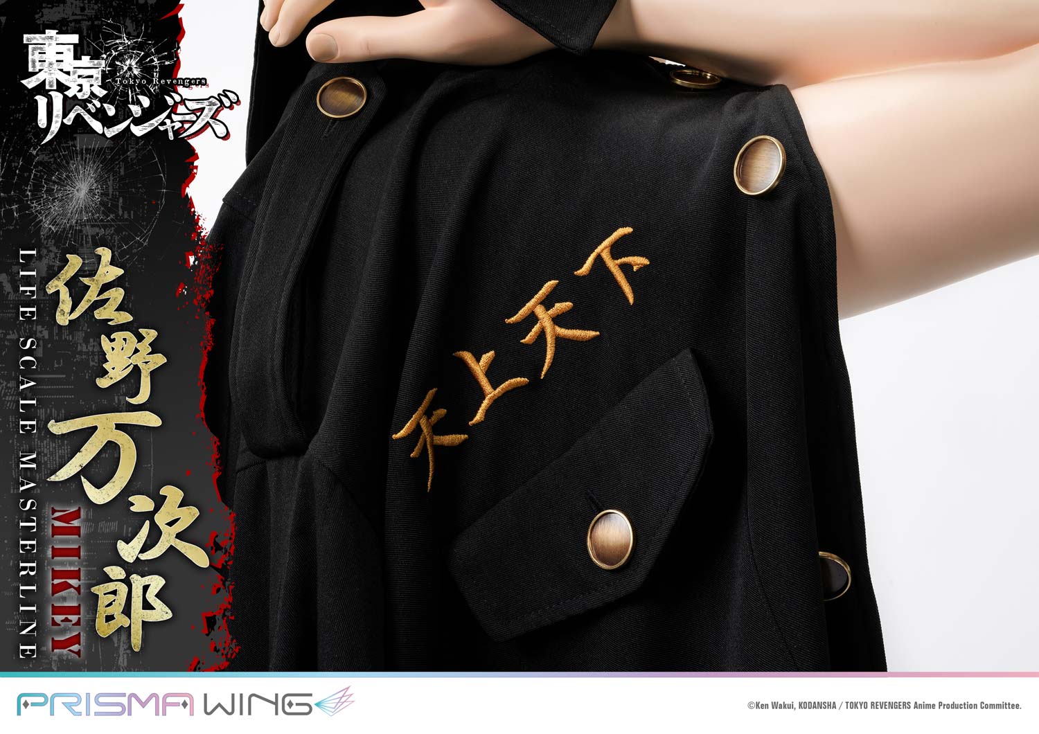 With a cool smile on his face, a lithe body charged with explosive power, and his signature tokkō-fuku uniform draped over his shoulders, Mikey—the man racing to the top of the delinquent world—has been faithfully recreated in a 169cm-tall 1/1 statue, close enough to feel like a friend. His loosely tied hairstyle is carefully sculpted, capturing every airy layer and high-toned highlight. His distinct eyes and skin tone also match the anime's visuals to perfection. The statue's body is made of FRP (Fiber-Reinforced Plastic), a material known for its light weight, strength, and excellent weather resistance—ensuring that he'll remain just as striking for years to come.
