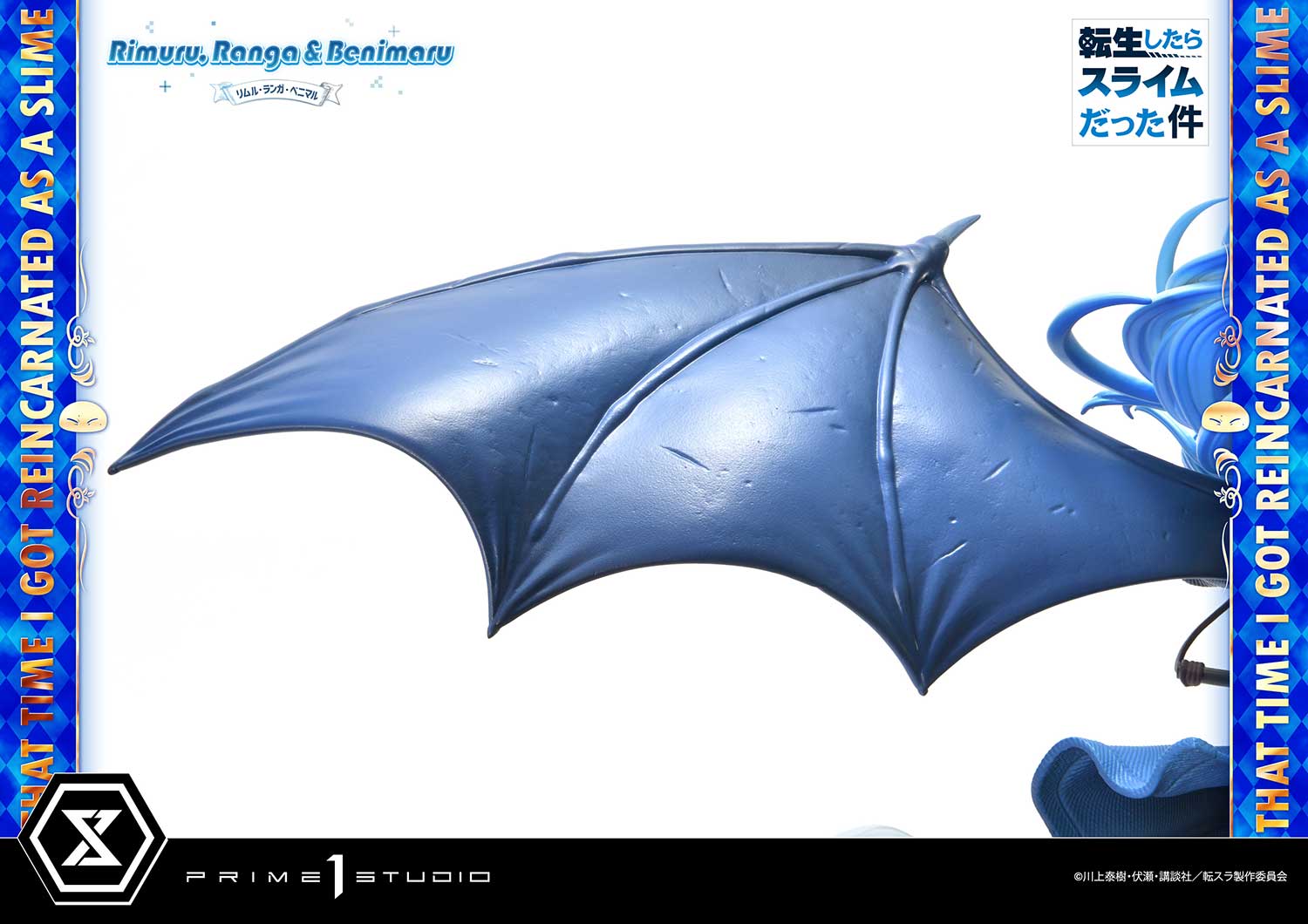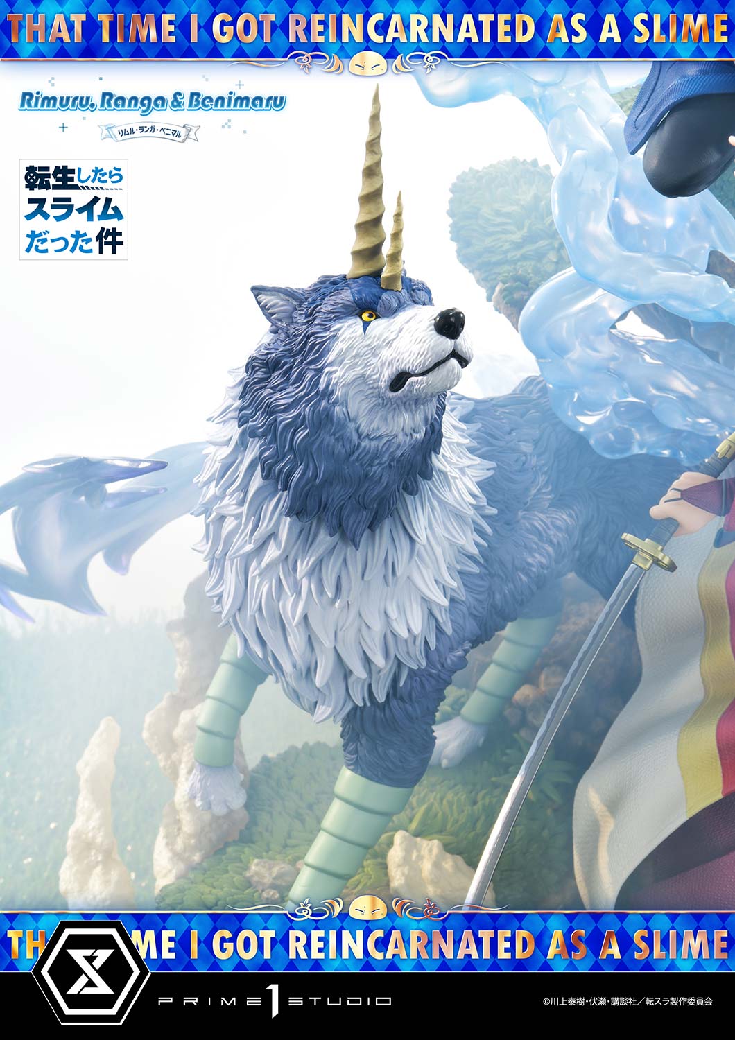 Prime 1 Studio is more than thrilled to be bringing you yet another riveting diorama of Rimuru alongside two of his best companions, Ranga the direwolf and Benimaru the Hobgoblin. Our artisans have once again pushed themselves above and beyond to portray the trio’s synergy and comradery in this dynamic and action-packed statue. Rimuru graciously slashes through weightless slime as he spreads out his draconic wings. Ranga, leader of the Star Wolf Clan, is ready to unleash powerful storms at any moment. Finally, the powerful Benimaru, in his Kijin form, brandishes his katana that leaves bright, scorching blue and black flames in its wake. Our artisans have once again outdone themselves through masterful texturizing and painting of this stunning piece of art; from Ranga’s thick coat of fur to Rimuru’s gracious hair strands and Benimaru’s blood-red kimono, everything is carefully finished with the utmost attention to detail!