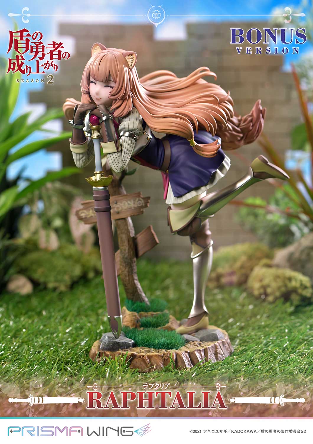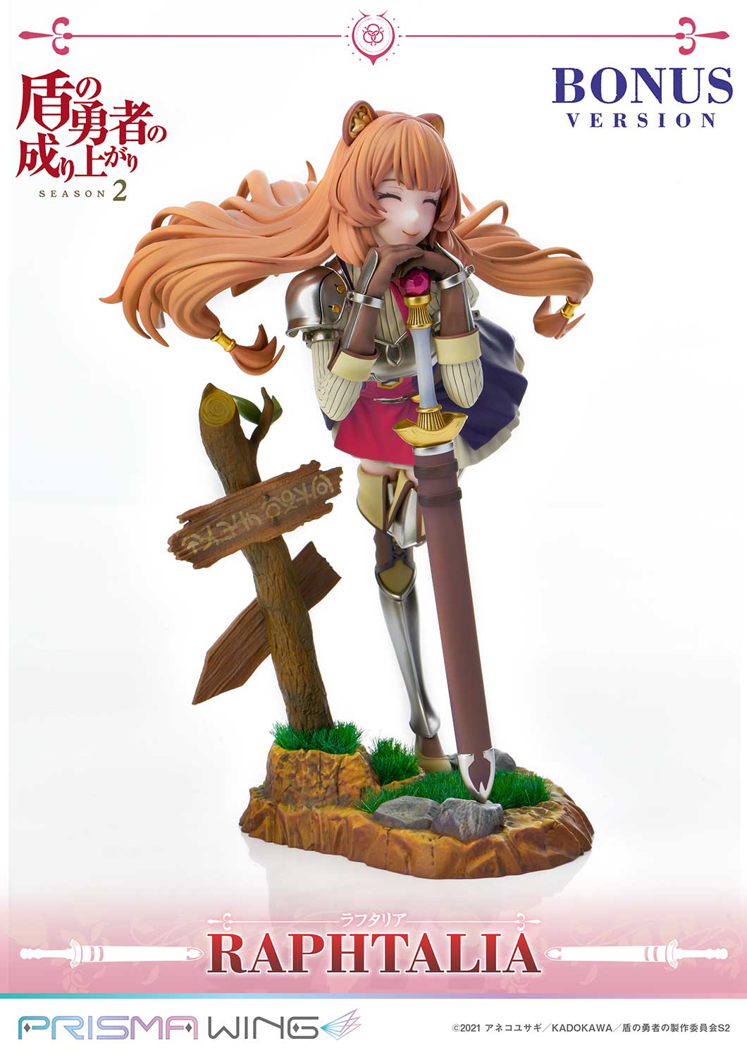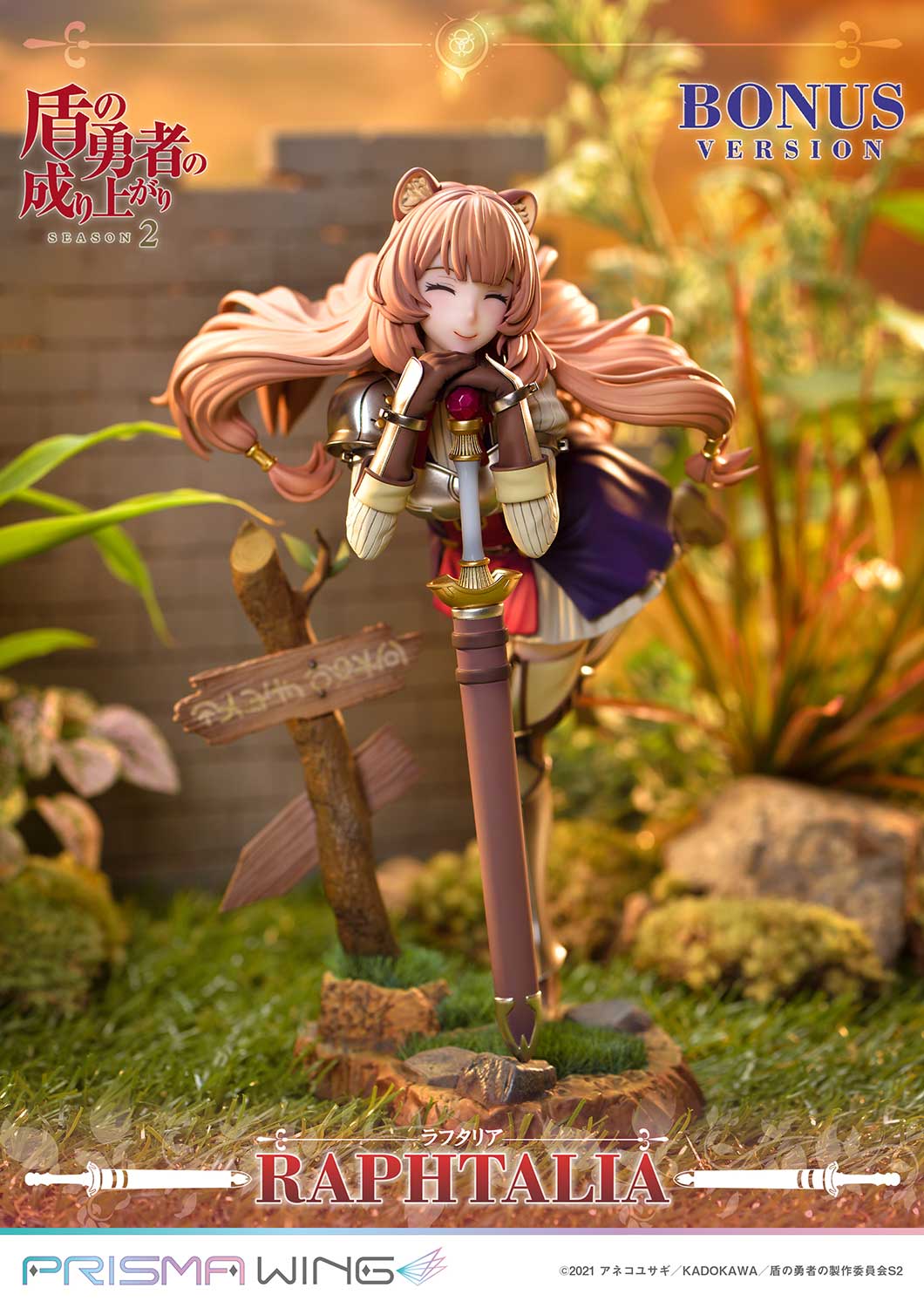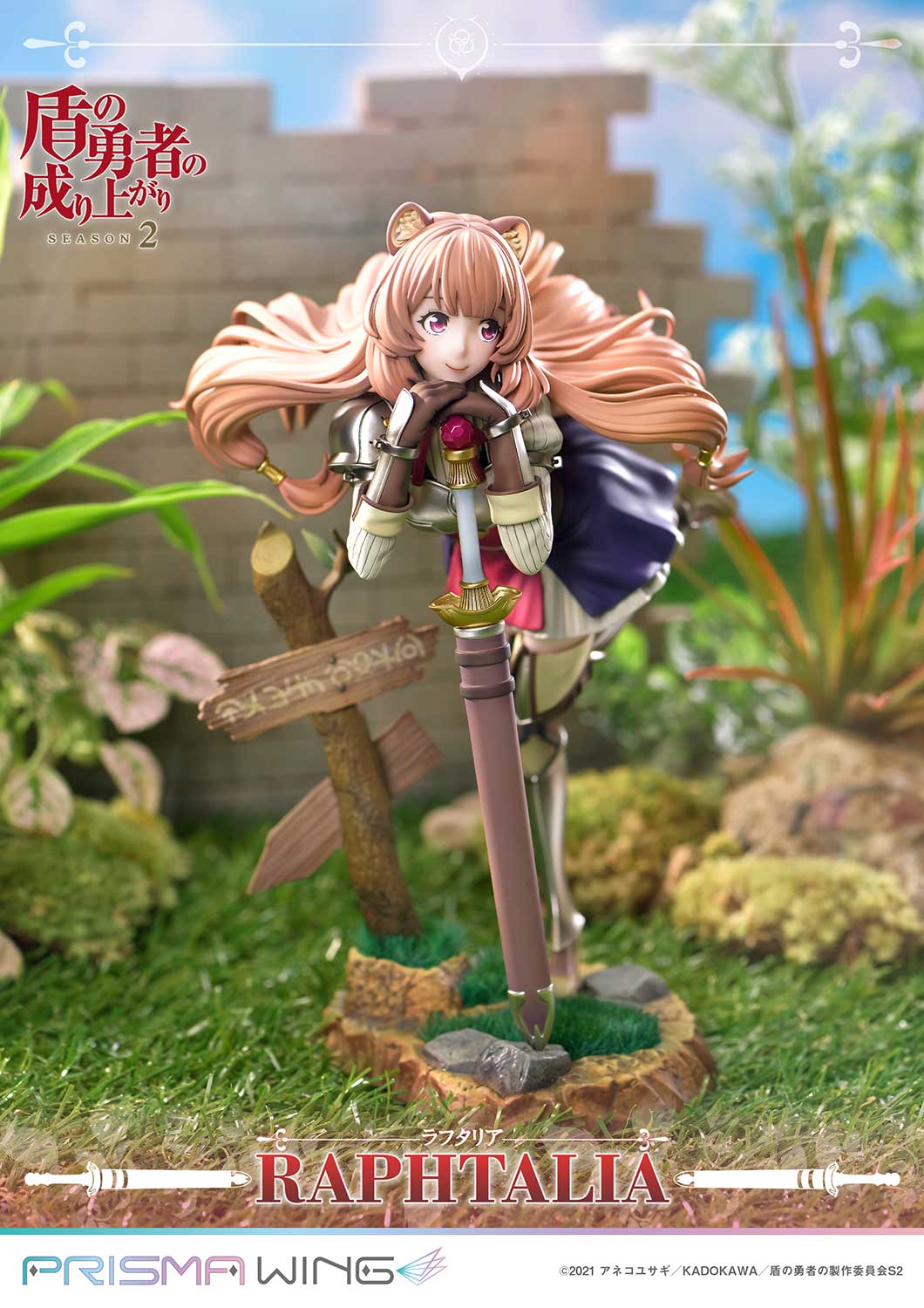 Embarking on an exciting quest to save the world, Raphtalia's path began with her fateful meeting with Naofumi, shaping her growth and resilience along the way. Capturing the essence of her innocence amidst the trials of her adventure, this figure brings Raphtalia's charm to life. Holding her sword with both hands, Raphtalia's cute and quirky pose contrasts her battle-ready role as Naofumi's trusted partner, showcasing both sides of her charm. Even the slightly tilted signpost contributes to this heartwarming scene.