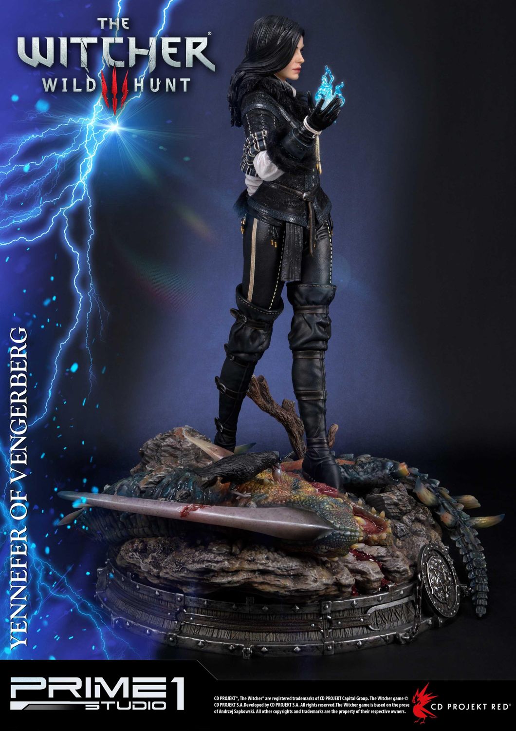 Yennefer of Vengerberg is a sorceress who lived in the capital city of Aedirn. She was the youngest member of the Brotherhood of Sorcerers and later the Lodge of Sorceresses attempted to recruit her. She is the love of the witcher Geralt of Rivia and a mother figure to Ciri, a former royal advisor to king Demavend of Aedirn and a close friend of Triss Merigold. Sculpted in approximately 22 inches tall, standing with a slayed Forktail at her feet.