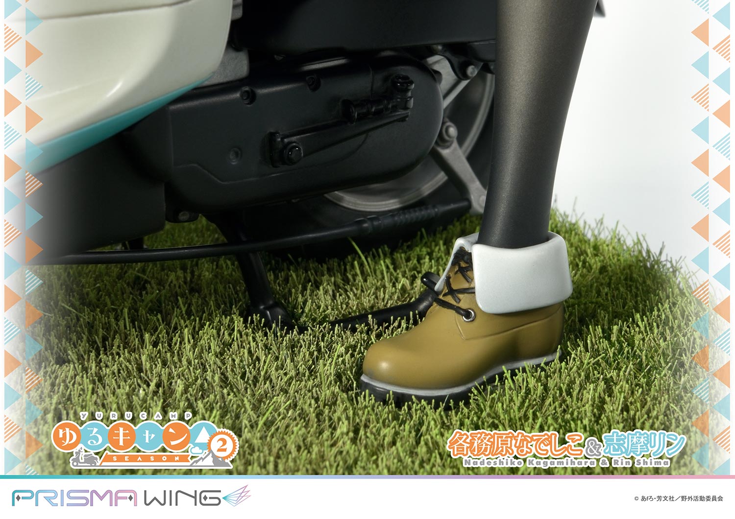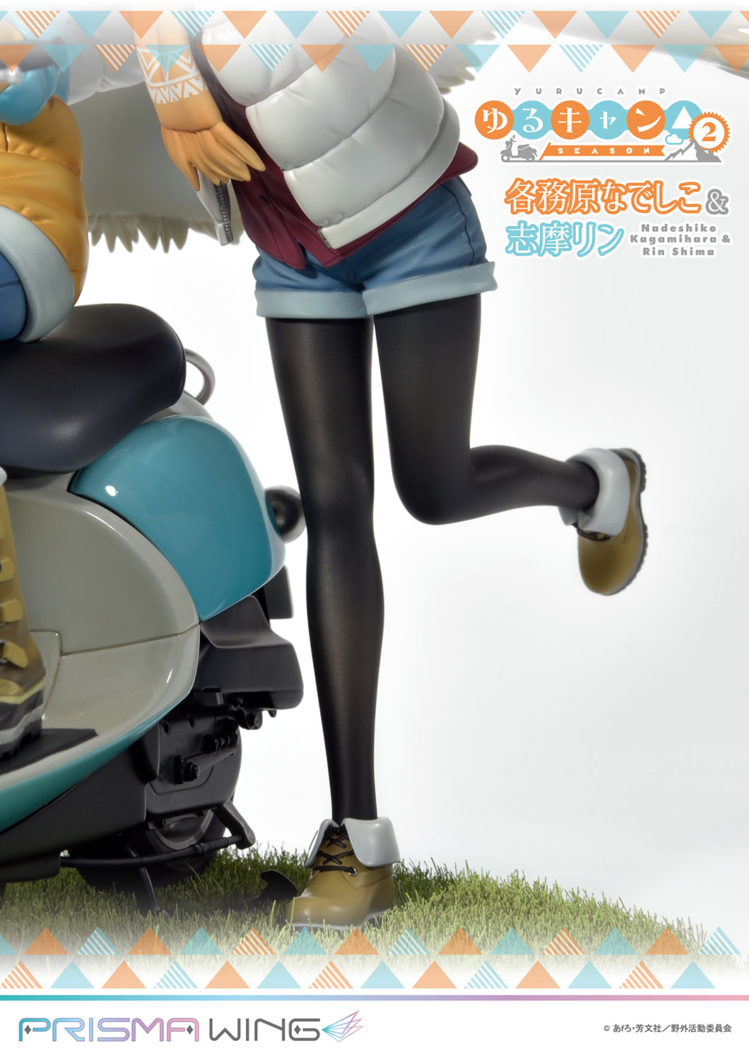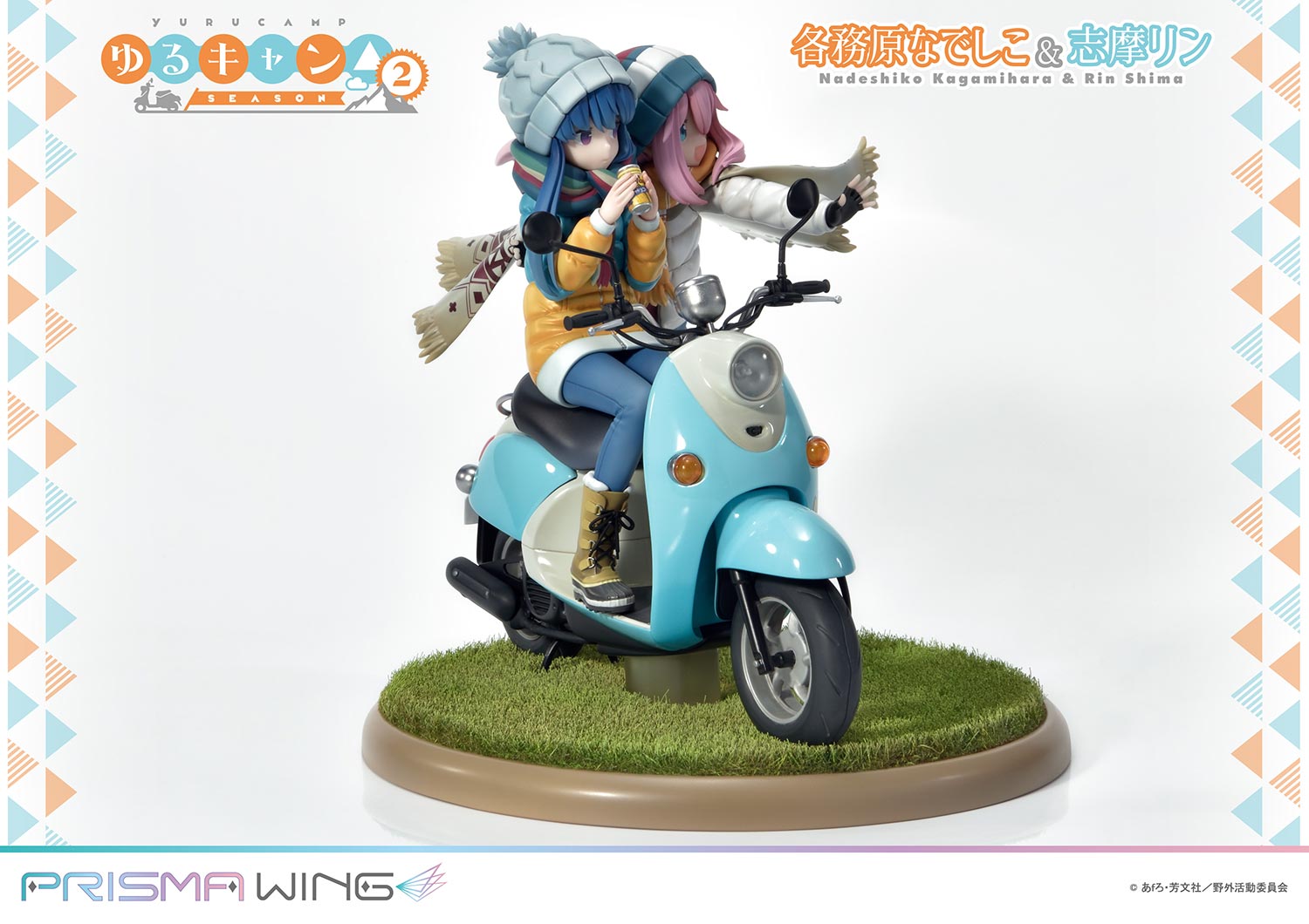 In collaboration with the talented sculptor Tomohide Enomoto, the everyday moments depicted in the anime are captured accurately. Their detailed expressions, poses, and clothing portray a fresh vibrancy, you can almost taste the clear air of the great outdoors depicted in the series. One of the highlights is Rin's scooter, which is also faithfully recreated to the last inch. The cyan and white colors of the body decorated with a beginner driver’s decal, the round headlights, and the numberplate, everything has all been precisely designed to keep you mesmerized.